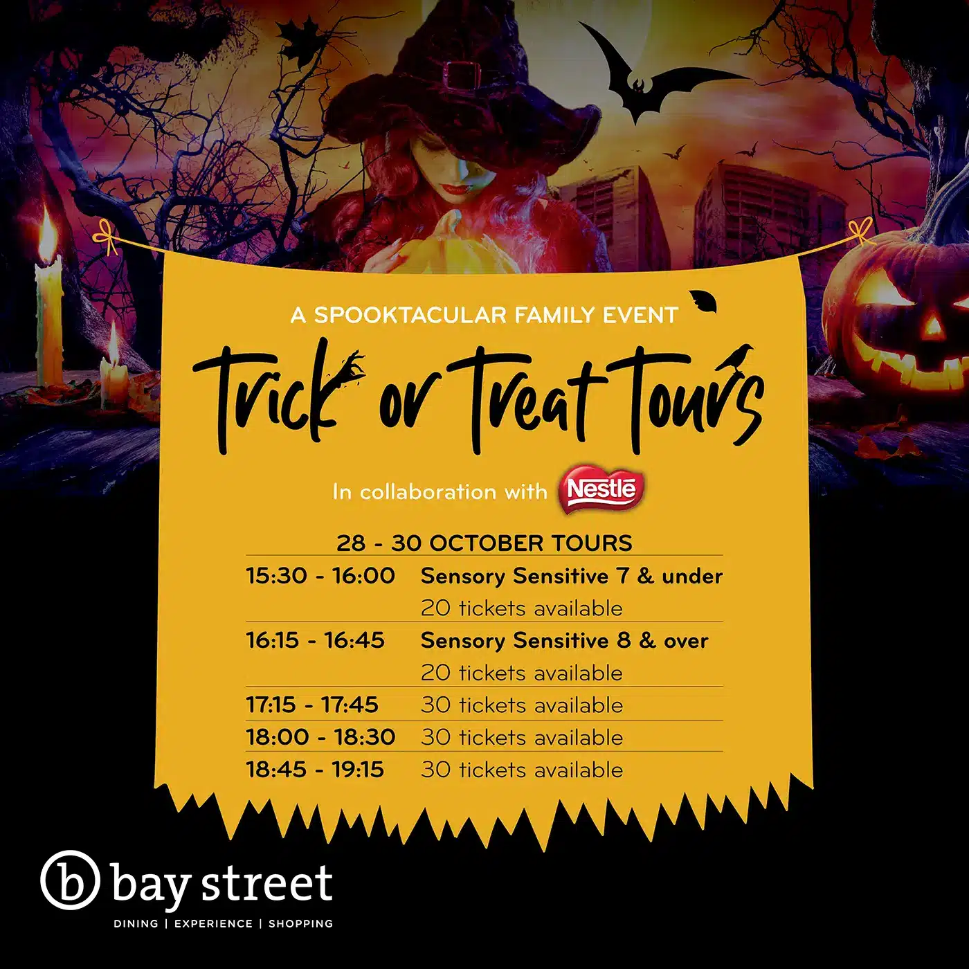 Join us from 28th till 31st of October for trick-or-treating around Bay Street Complex in collaboration with Nestle, along with some wicked entertainment from our fa-boo-lous witches! 🧙♀️